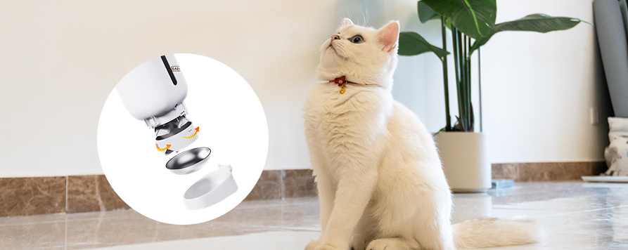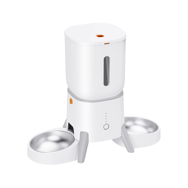 Designen med dubbla skålar rymmer både mat och vatten samtidigt, vilket håller allt organiserat. En av nyckelfunktionerna hos denna smarta matare är dess breda kompatibilitet. Oavsett om du matar extruderad hundmat, frystorkad mat, uttorkad mat, bakad hundmat eller blandat husdjursfoder, kan denna matare enkelt ta emot det.
