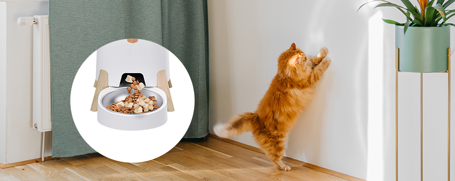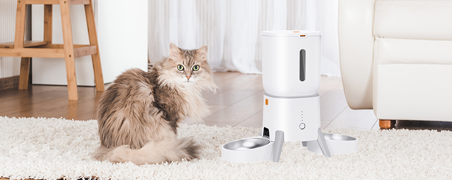 Smart husdjursmatare i ett stycke med dubbla skålar