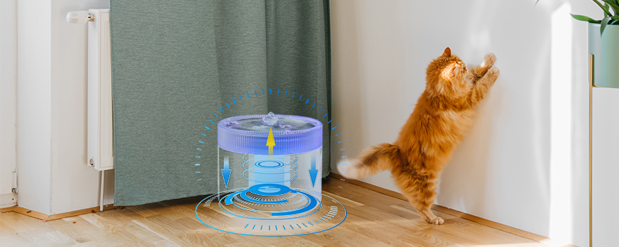 Fontänens cirkulerande filtreringssystem har en 360° all-around reningsdesign. Vatten cirkulerar kontinuerligt i maskinen, vilket effektivt tar bort orenheter, lukter och bakterier, vilket säkerställer att vattenkvaliteten förblir konstant fräsch och ren. Den 24-timmars oavbrutna reningsfunktionen säkerställer att husdjur alltid har tillgång till friskt, hälsosamt vatten, vilket ökar deras vattenintag och förhindrar effektivt urinvägsproblem och uttorkning.